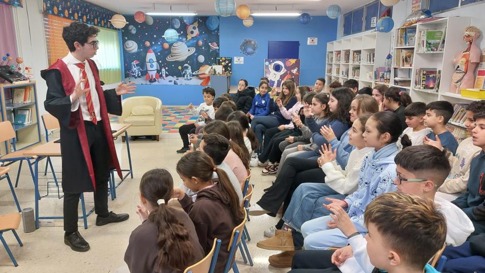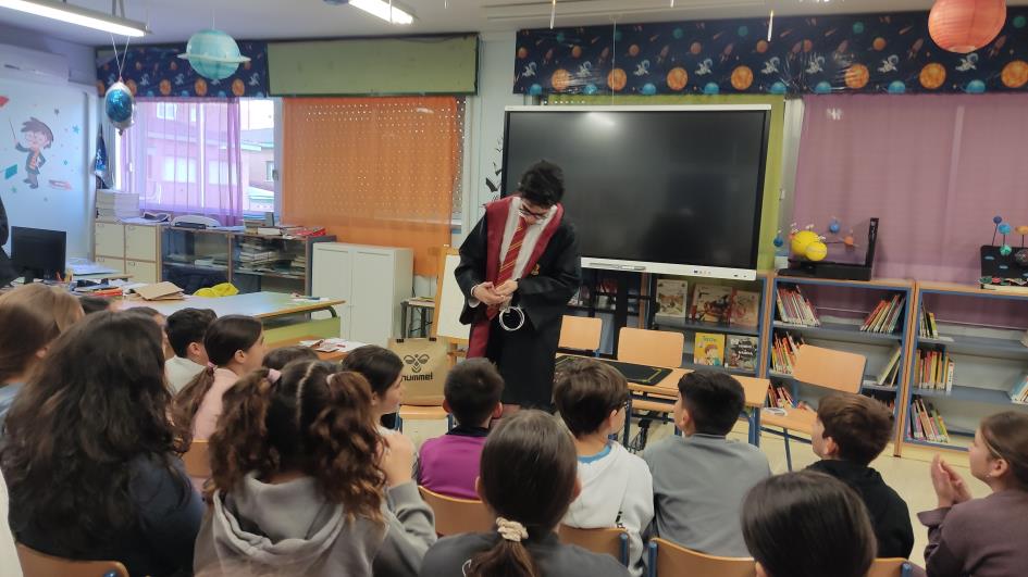 Dentro de las actividades de la "Semana Cultural 2026" dedicada a "la Magia y Harry Potter", el lunes 16 nuestro alumnado recibió la visita del Mago Dani. A continuación les ofrecemos imágenes de la actuación.