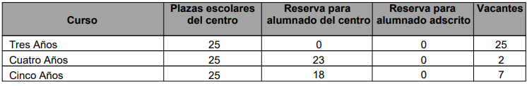 - 1 plaza en Tres Años para el alumnado que precisa