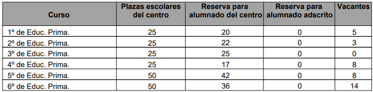 infantil y educación primaria en nuestro centro para el curso