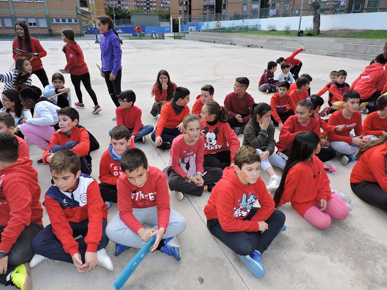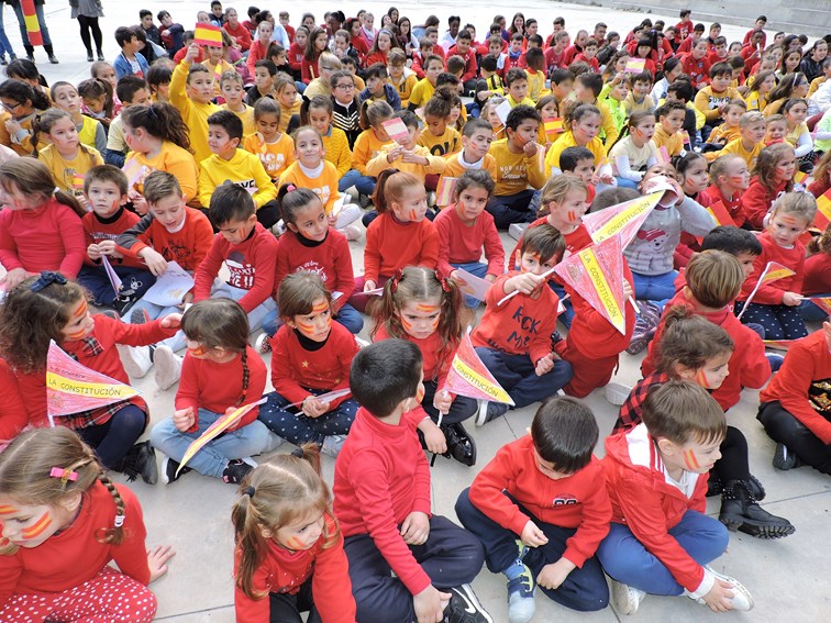 nuestro alumnado ha formado una bandera de Españahumana mientras que sus compañeros/as del