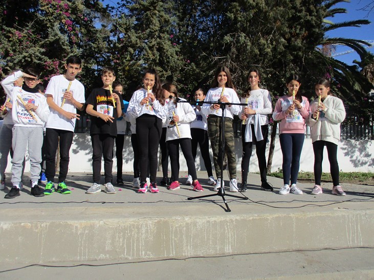 con la flauta y el Coro del colegio