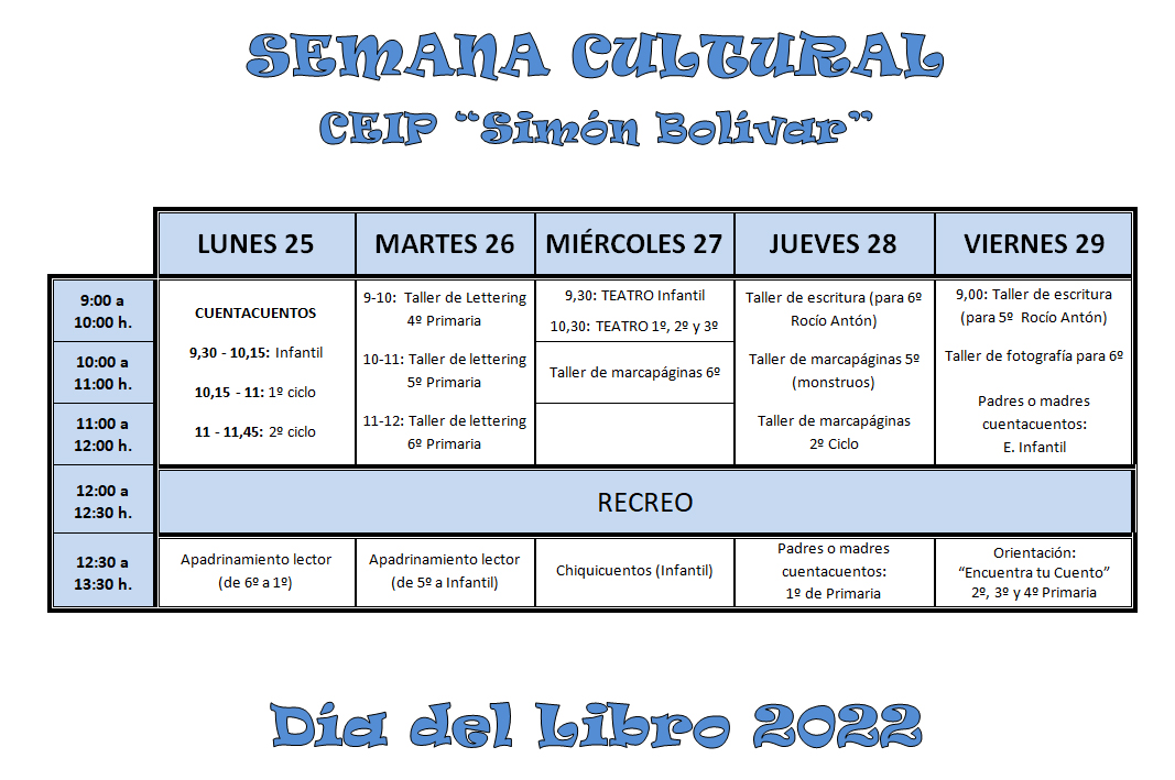 de teatros, cuentacuentos, talleres…