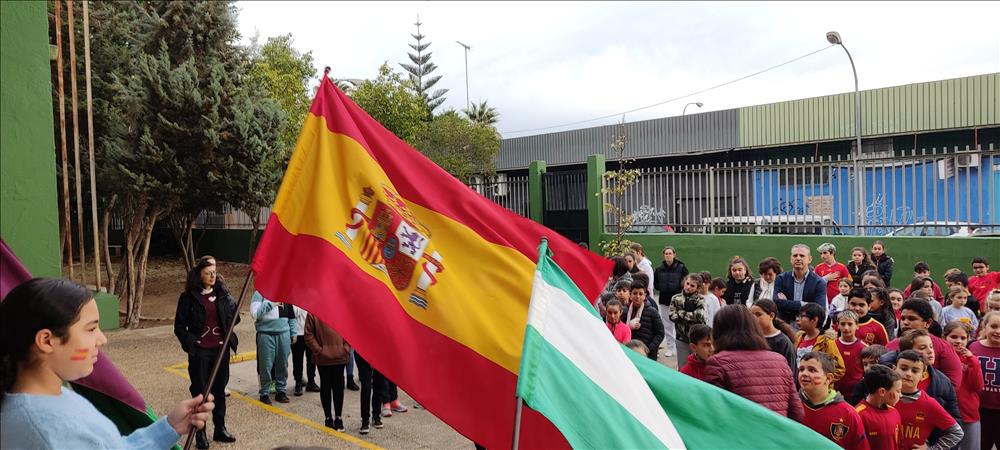 El lunes 5 de diciembre celebramos en nuestro centro el Día de la Constitución. Al entrar al centro nos reunimos para escuchar nuestro himno junto a la bandera de nuestro país.