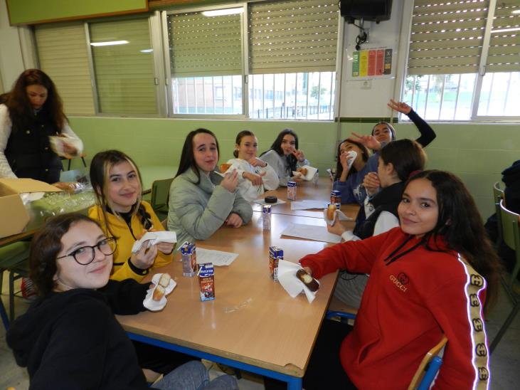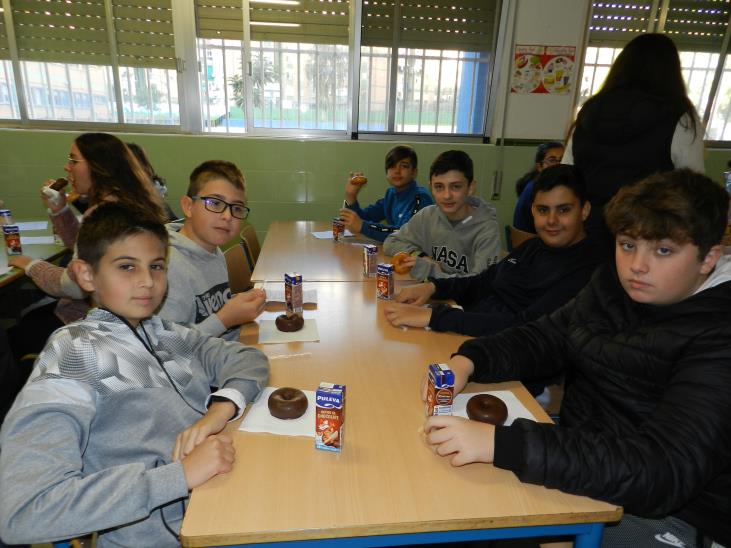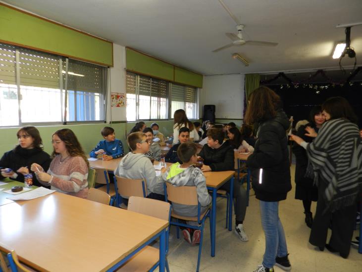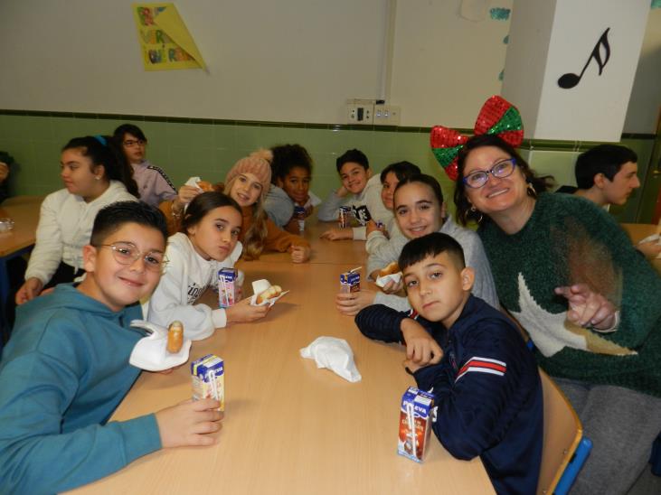 Después de cantar el villancico disfrutamos de un desayuno navideño ofrecido por el AMPA