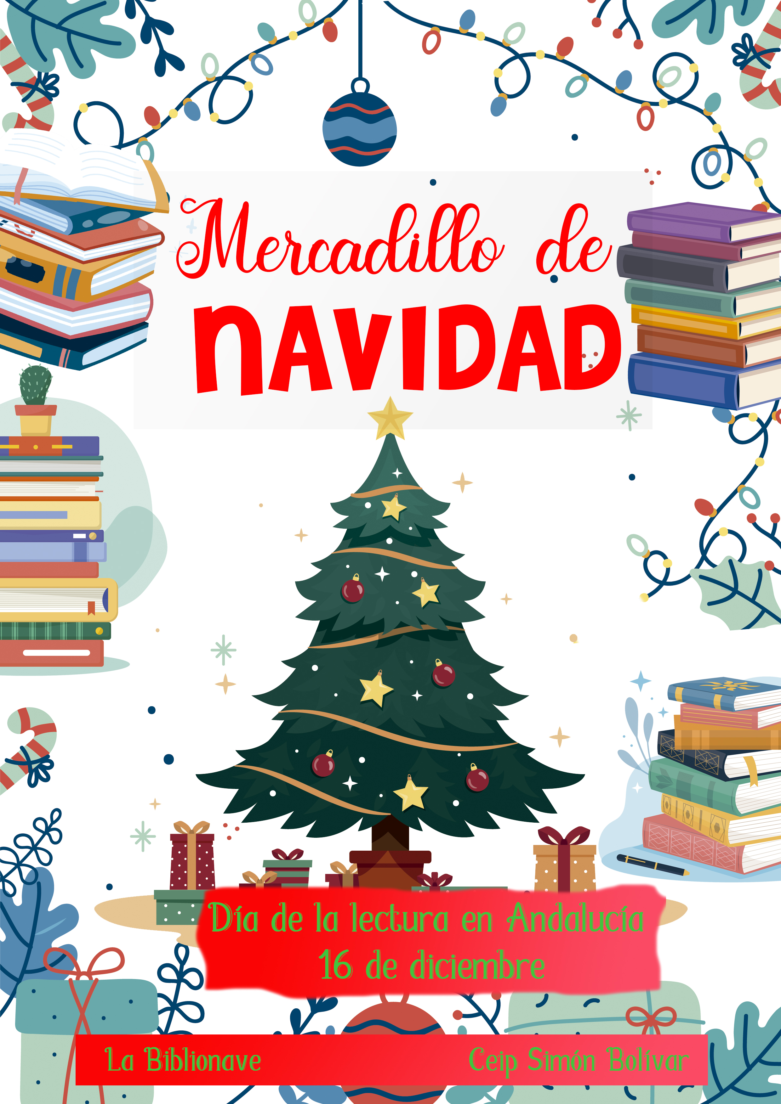 El lunes 16 de diciembre, celebraremos el “Día de la lectura en Andalucía” con un Mercadillo de Segunda Mano para comprar libros nuevos `para la Biblionave.