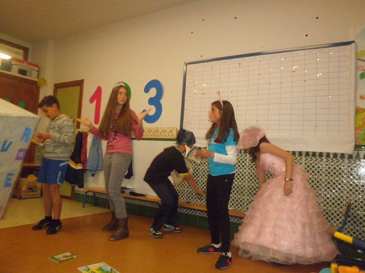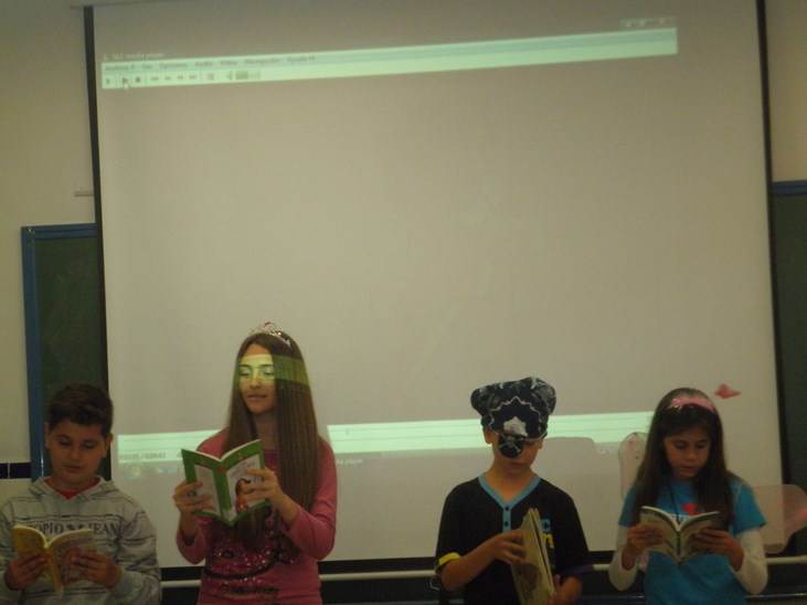 Para presentar la "Semana del Libro" los alumnos/as de 6º de Primaria visitaron las clases de sus compañeros/as dramatizando y cantando la canción "Los Libros" del Grupo "Cantamos Contigo", como vemos en el siguiente vídeo.